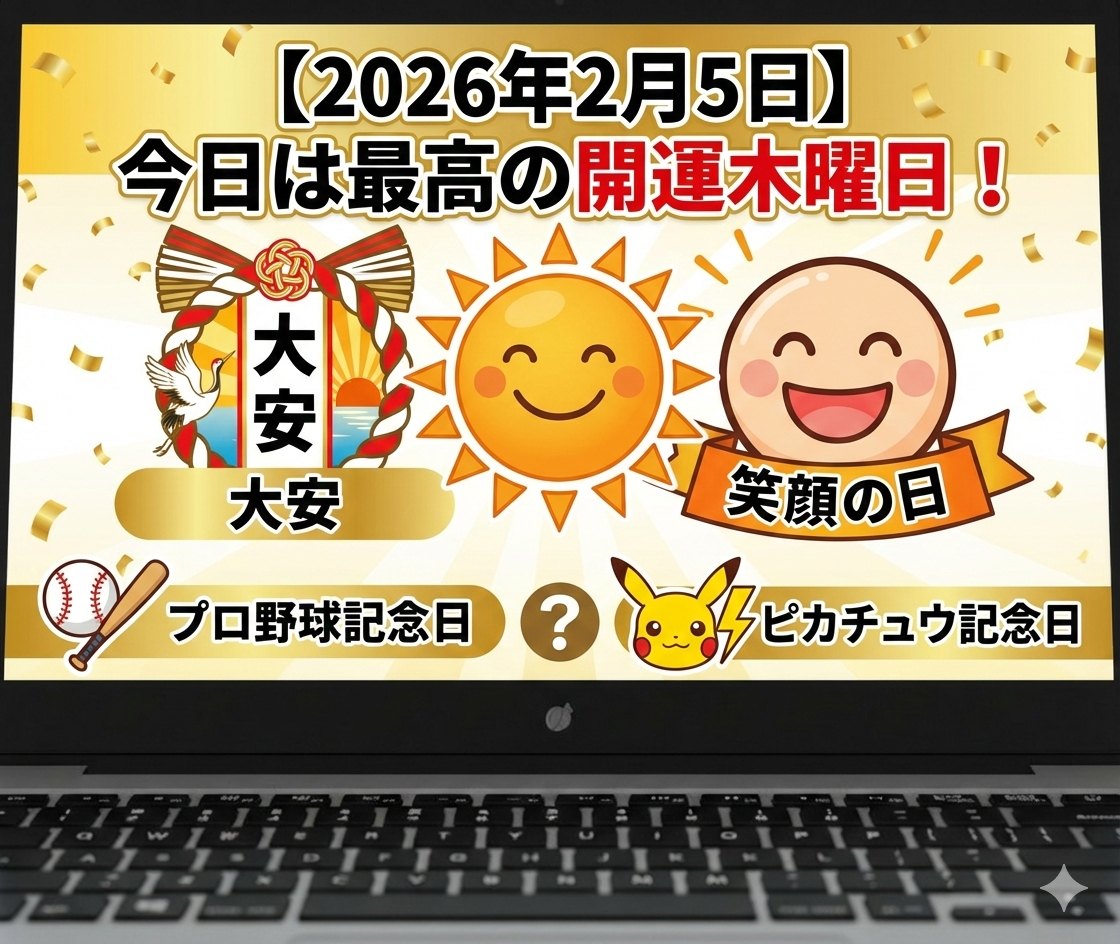 【2026年2月5日】今日は最高の開運木曜日!「大安」×「笑顔の日」の由来と、知っておきたいプロ野球・ピカチュウの記念日トリビア