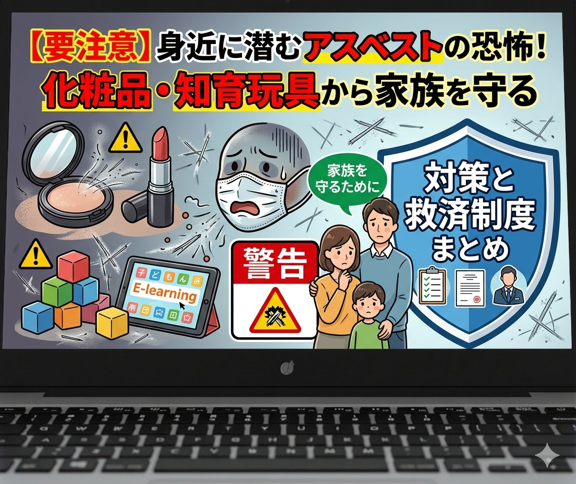 近年、私たちが毎日使う化粧品、子どもが遊ぶ知育玩具、そして大ヒット商品となった珪藻土(けいそうど)バスマットなどから、基準値を超えるアスベストが検出されるニュースが相次いでいます。さらに、「建設現場で働いたことなど一度もない」化粧品販売員の方が、仕事で扱っていた製品が原因でアスベストによる健康被害(労災)を認められるという、歴史的な事例も発生しました。