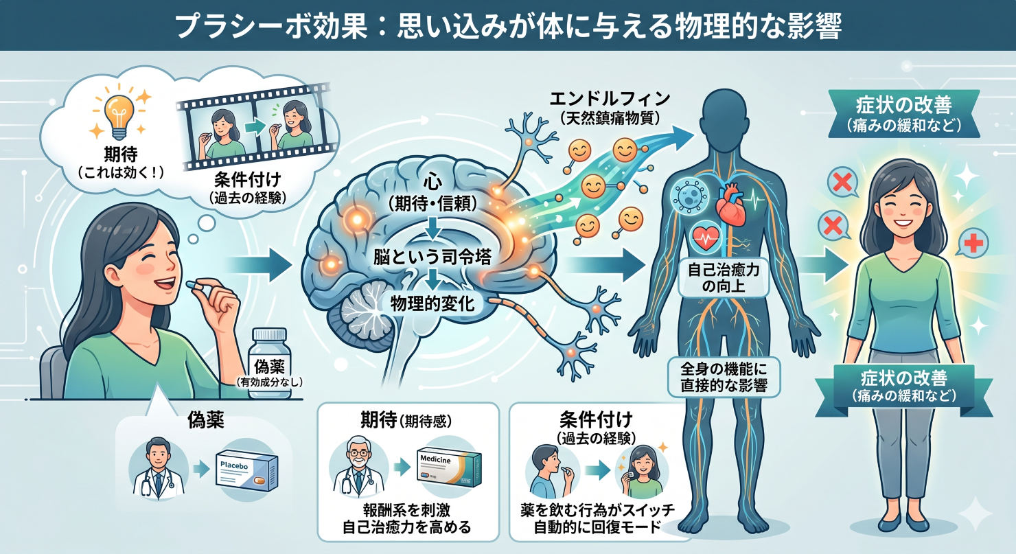 - 【テーマ1】プラシーボ効果の正体:なぜ「偽物の薬」で症状が改善するのか