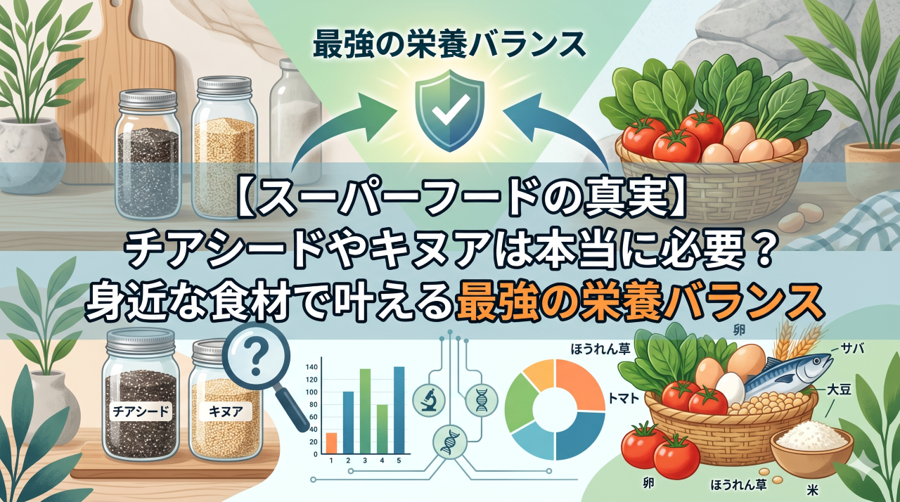 テレビの健康番組やSNSの美容アカウントを開けば、「美容に良い!」「健康維持に欠かせない!」と連日のように話題になる「スーパーフード」。チアシードやキヌアなど、おしゃれで魅力的な響きを持つ食材が次々と登場し、「私も毎日の食事に取り入れたほうがいいのかな?」「食べないと損をしているのでは?」と悩んでしまうことはありませんか?実は、海外からやってきた高価なスーパーフードに頼らなくても、私たちの身近にある「いつもの食材」で十分な栄養をとることができるのです。