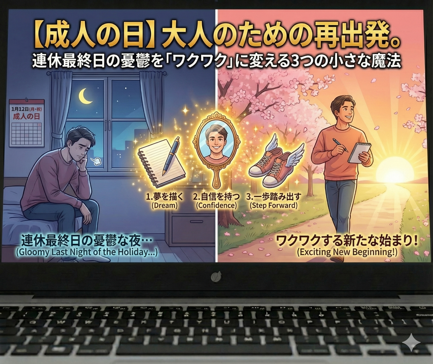 【成人の日】大人のための再出発。連休最終日の憂鬱を「ワクワク」に変える3つの小さな魔法