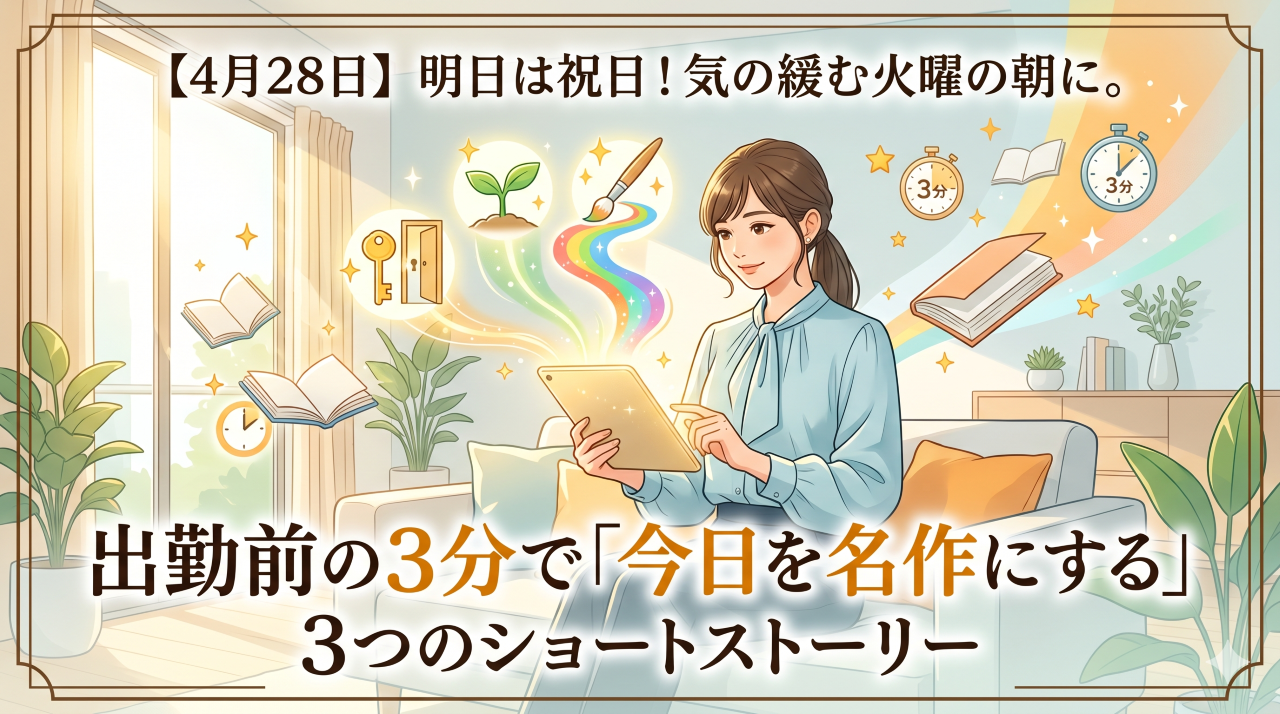 【4月28日】明日は祝日!気の緩む火曜の朝に。出勤前の3分で「今日を名作にする」3つのショートストーリー