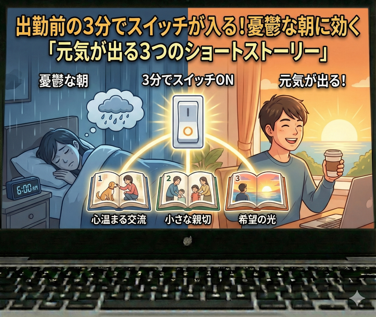 出勤前の3分でスイッチが入る!憂鬱な朝に効く「元気が出る3つのショートストーリー」