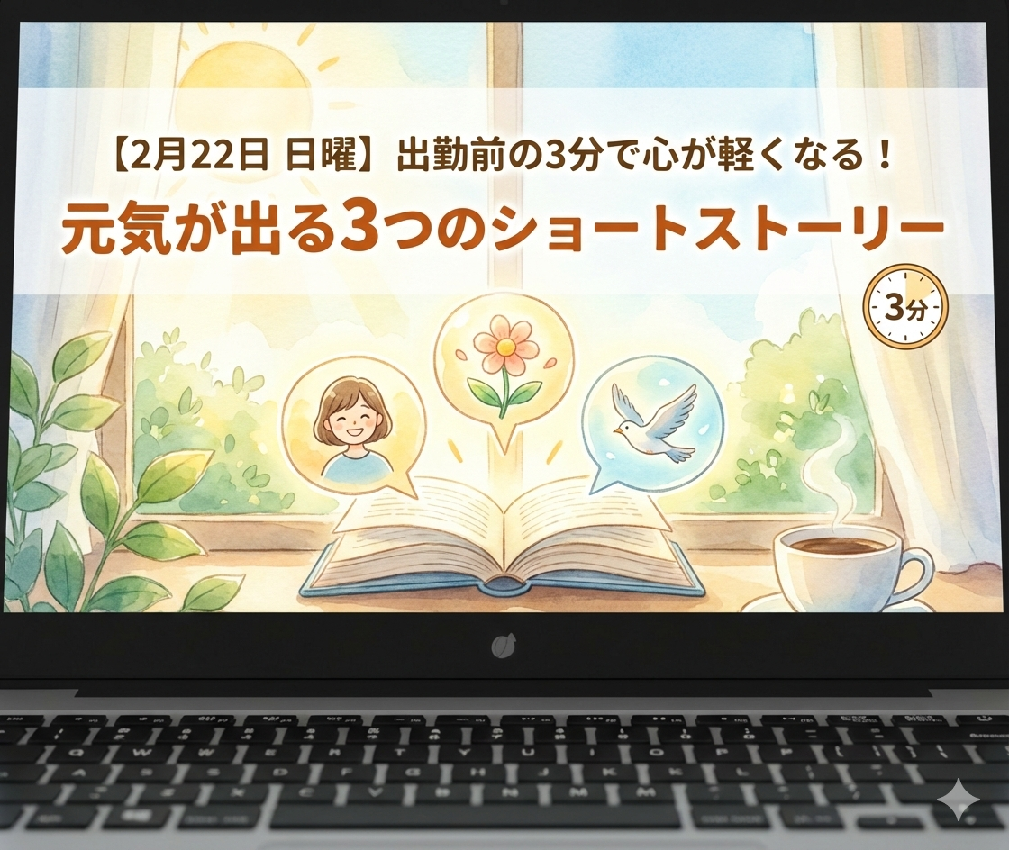 【2月22日】出勤前の3分で心が軽くなる!日曜の朝に効く「元気が出る3つのショートストーリー」