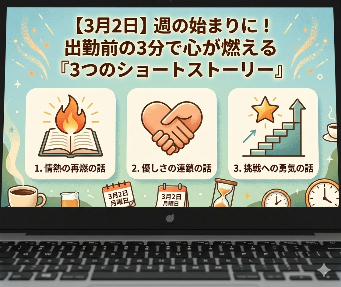 【3月2日】週の始まりに!出勤前の3分で心が燃える「3つのショートストーリー」