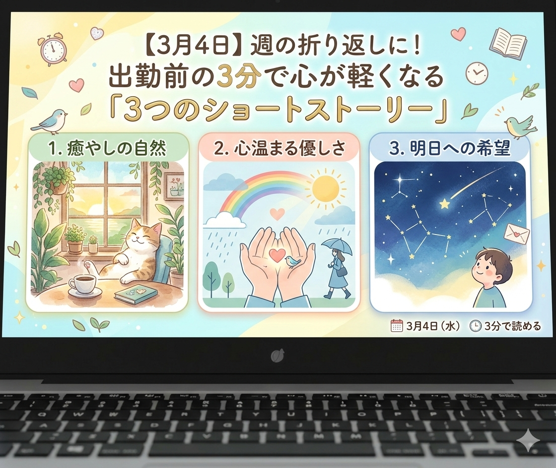 【3月4日】週の折り返しに!出勤前の3分で心が軽くなる「3つのショートストーリー」