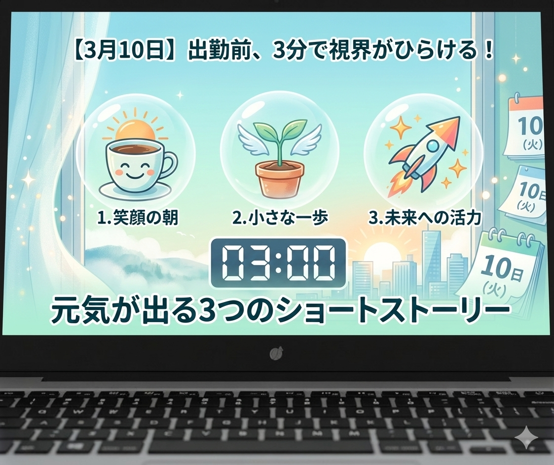【3月10日】出勤前の3分で視界がひらける!火曜の朝に贈る「元気が出る3つのショートストーリー」