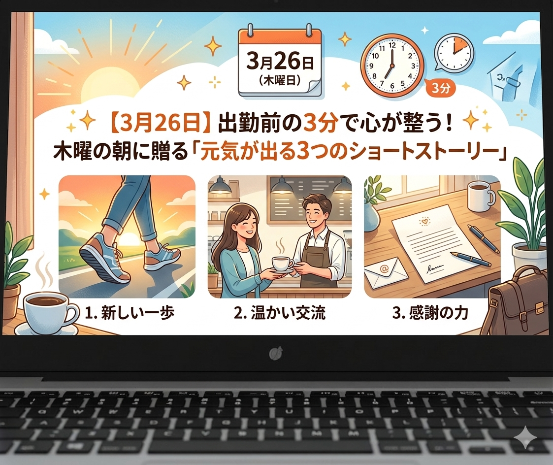 【3月26日】出勤前の3分で心が整う!木曜の朝に贈る「元気が出る3つのショートストーリー」