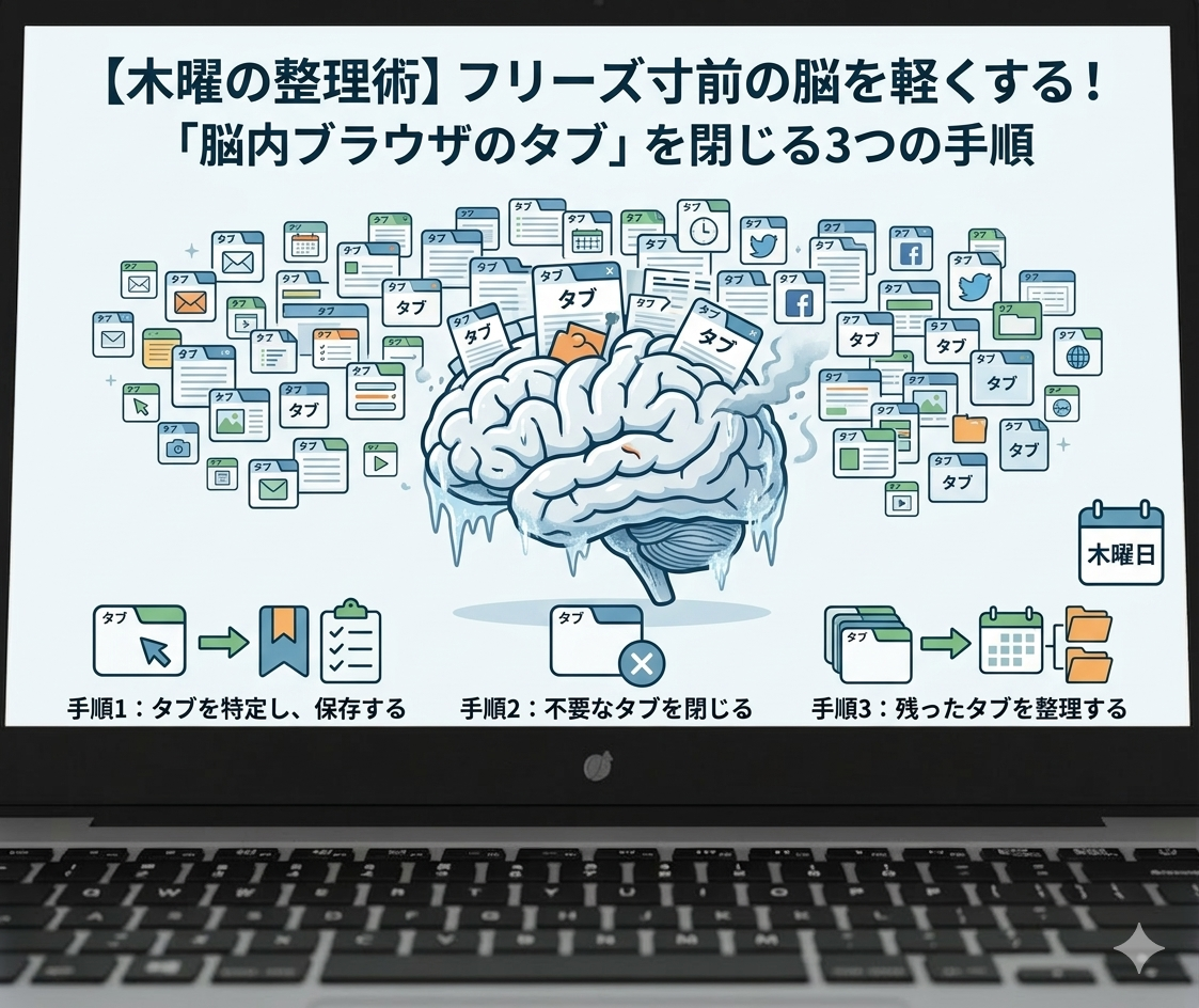 【木曜の整理術】フリーズ寸前の脳を軽くする!「脳内ブラウザのタブ」を閉じる3つの手順
