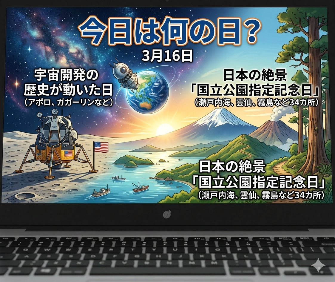 【3月16日は何の日?】宇宙開発の歴史が動いた日と、日本の絶景「国立公園指定記念日」