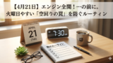 週明けの月曜日は、つい焦って予定を詰め込みがちですが、午前中はメールの返信や今週のスケジュール整理など落ち着いた作業に充て、午後から本格的にエンジンをかけていくのが良さそうですね。