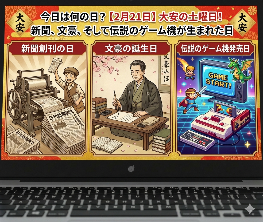 今日は何の日?【2月21日】大安の土曜日!新聞、文豪、そして伝説のゲーム機が生まれた日